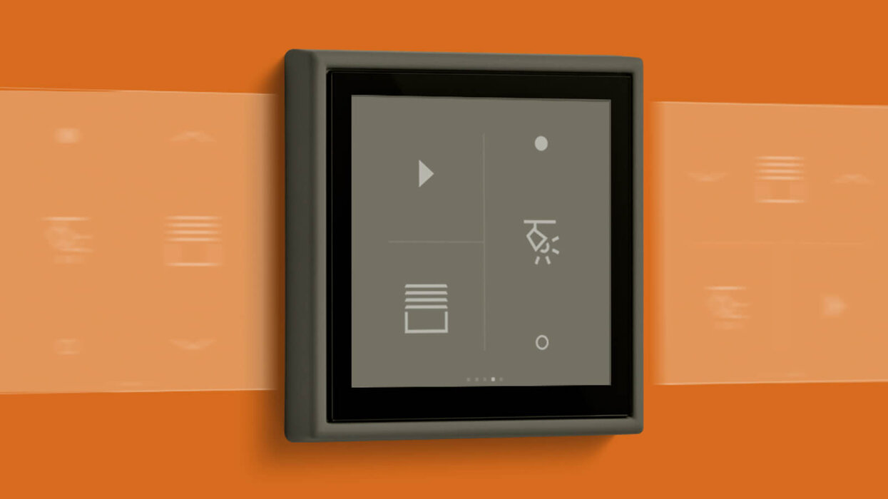 LS TOUCH setzt auf klare und eindeutige Symbole, die Bedienphilosophie erinnert an die Bedienung moderner Smartphones: Die Funktionen werden über das Swiping auf dem Display aufgerufen. Swipe-Bewegungen sind in alle Richtungen möglich, die Belegung der Menüs lässt sich den individuellen Präferenzen anpassen. Auch beim Design bietet der Raumcontroller zahlreiche Optionen: LS TOUCH ist fest mit einem Einfachrahmen der JUNG Schalterprogramme LS 990 oder LS ZERO verbaut. Damit ist das Touchdisplay in sieben Kunststoff-Varianten und in Ausführungen aus Echtmetall erhältlich. Darüber hinaus bietet JUNG LS TOUCH in den 63 Farben von Les Couleurs® Le Corbusier an. Je nach Rahmenfarbe bzw. -material ist im User Interface die passende Hintergrundfarbe hinterlegt. Dank dieser Designvielfalt lässt sich der Raumcontroller harmonisch mit der übrigen Elektroinstallation im Zuhause kombinieren.